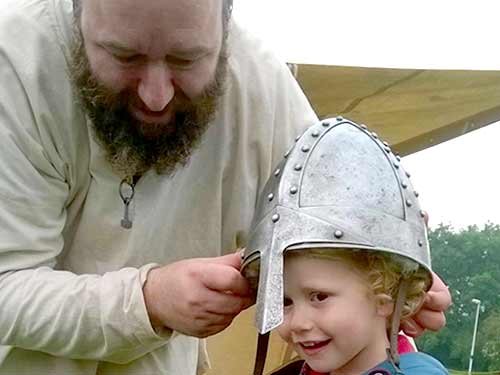 Alia Banks - Daughter of our group leader and Wic Mother, Steve and Vicki, who having been born and raised into the world of Viking re-enactment takes it all in her stride and can ofter be found with the boys on the weapons display explaining the weapons to members of the public.