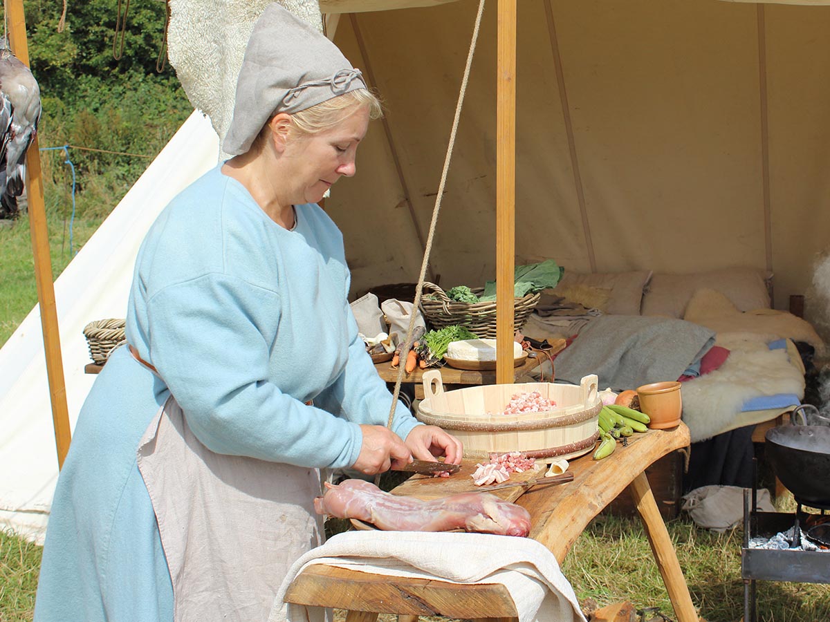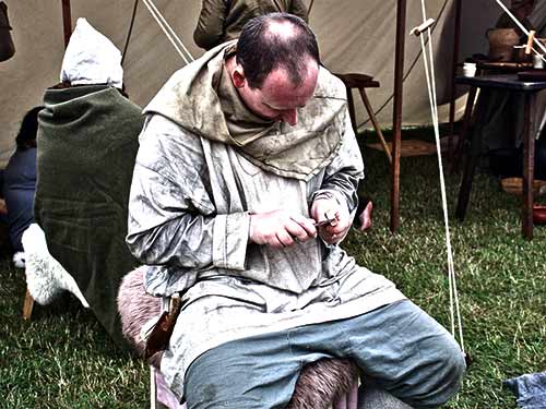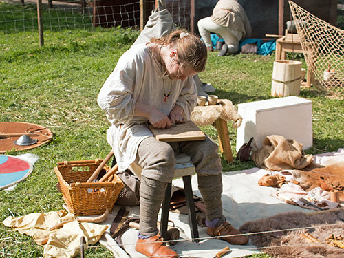 Averil Fountain - Averil is a recent newcomer to re-enactment and is thoroughly enjoying being part of the group. It is a complete change from her day job. She has always loved learning about history, as well as sewing and making things. She is currently learning the basics of leathercraft. She never thought 6 months ago she might be making her own Viking turnshoes!