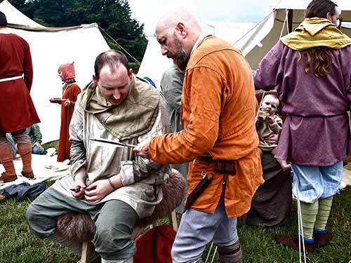Rick Cutts - Rick is a dedicated Viking reenactor belonging to two major reenactment societies. When not on the battlefield protecting his lord he can be seen in his other guise as a Brother trying to convert the Pagan Vikings.
